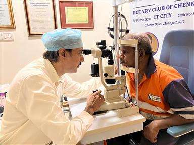 Eye Camp at Ramana Eye Clinic and was organised by IT City as part of our Project Aarogya. Rtn Dr Senthilnathan our past president with support from his staff and Rtn Rewins, Rtn N Venkateswaran, Rtn Srinivasa Rao, Rtn Palaniappan, Rtn Hariprakash, Rtn Mohanakrishnan, Rtn Padmanabhan Menon, Rtn N Anand, Rtn Preetha, Rth Padma, Rtn Nagarajan, Rtn Sudha Cannan, Rtn Seshasundari managed the camp. Local Community leaders and members also supported this initiative. Underprevileged Corpotration workers and Drivers were identified as beneficiaries for this Camp. Overall 60 persons were screened, spectacle provided to 20 persons and 8 persons were identified having Cataract at various stages and need surgery. IT City will plan and perform Eye Surgeries for beneficiaries soon in a structured and planned way.