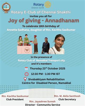 Annadhanam to celebrate Annette. Sadhana 18th birthday at Sivabakiam rehabilitation Center for disabled persons, Namakka